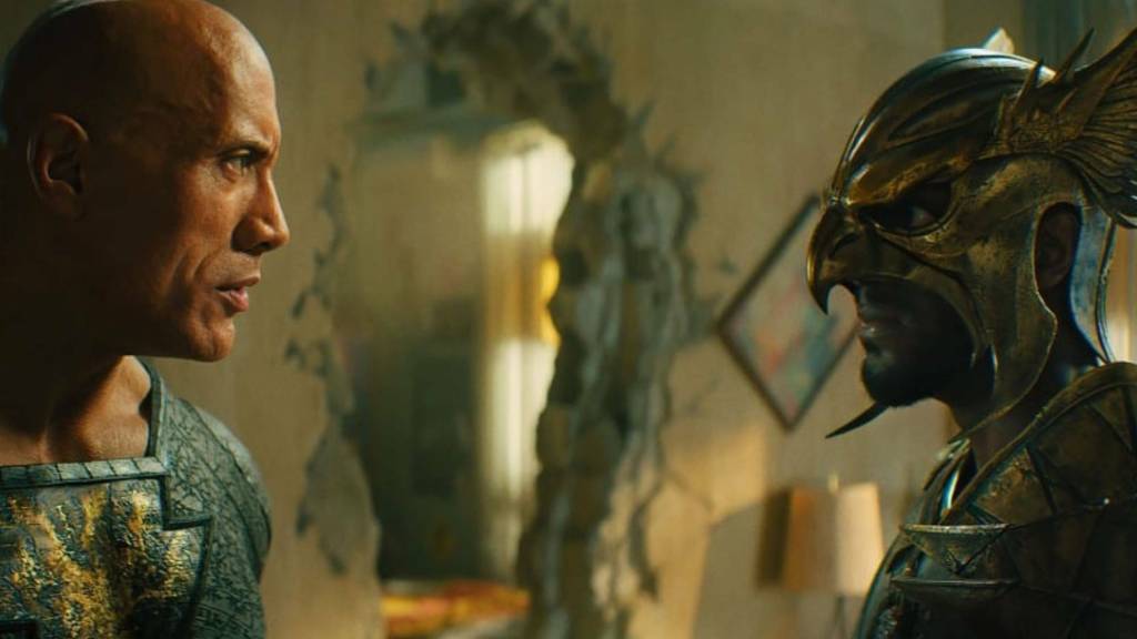 Auch wenn Dwayne Johnson nie für herausragende darstellerische Leistungen bekannt war, schaffte er es doch meist, mit natürlichem Charme immerhin Sympathiepunkte zu generieren und so sein Publikum mit Leichtigkeit bei Laune zu halten. In „Black Adam“ ist von diesem Talent jedoch nichts mehr zu spüren. Wie ferngesteuert rattert er bedeutungslose Phrasen herunter und agiert dabei mit ungefähr so viel Ausstrahlung wie ein Roboter auf Autopilot. Während seine nicht mit Superkräften gesegneten Mitstreiter entweder nervig, belanglos oder einfach nur blass erscheinen, hält die Justice Society of America zumindest zwei spaßige und liebenswerte Figuren parat – auch wenn die Gags größtenteils ins Leere laufen.