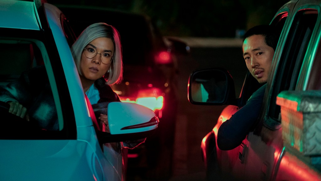 Wofür überhaupt eine ganze Folgen-Besprechung, wo doch eigentlich bereits die ersten fünf Minuten vollkommen ausreichen, um klarzumachen: „Beef“ ist ein Must-See! Der Puls schießt blitzschnell in die Höhe und die angespannte Nervosität des von Steven Yeun verkörperten Danny ist plötzlich auch die des Publikums. Wir sind im rage-mode! Obwohl sich das Netflix-Original nach außen als schwarzhumorige Comedy präsentiert, wohnt ihr doch das Temperament eines nervenaufreibenden Thrillers inne. Als Gegenspielerin bekommt der „The Walking Dead“-Darsteller, welcher sich zu diesem Zeitpunkt bereits als absolute Idealbesetzung erweist, die nicht weniger fantastische Ali Wong an die Seite gestellt. Nach der rasanten ersten Episode ist die Freude auf die restlichen neun, rund 30-minütigen Folgen jedenfalls groß – und die Wahrscheinlichkeit, dass diese in einem Rutsch wegkonsumiert werden nahe den 100%! Los geht’s!
