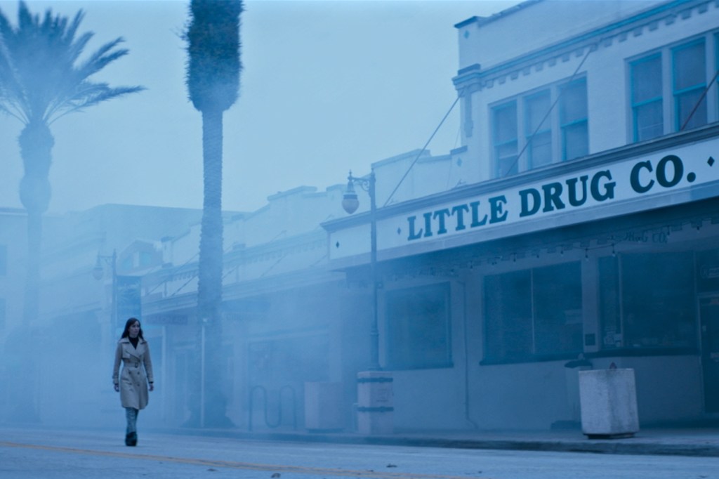 Wenn Marie durch die verlassenen Straßen der von der Außenwelt abgeschotteten Insel rennt und sich dabei durch das Dickicht der flächendeckenden Nebelschwaden arbeitet, entzückt „Offseason“ zunächst mit einem äußerst ansehnlichen Gewand, das man so bei einem Heimkino-Release nicht unbedingt hat kommen sehen. Das entsättigt-blaue Setting wird dabei einzig durch das stechende Rot vereinzelter Leuchtreklamen oder dem flackernden Licht der Warnleuchten durchbrochen. Ganz genauso muss Horror aussehen! Vom atmosphärischen Szenenbild des an den kosmischen Horror von H. P. Lovecraft angelehnten Mysteryfilms kann sich selbst die Videospielverfilmung „Silent Hill“ – rein optisch gibt es eindeutige Parallelen – noch eine Scheibe abschneiden. Nur schade, dass sich hinter dem dichten Nebel ein äußerst fragiles Konstrukt verbirgt…