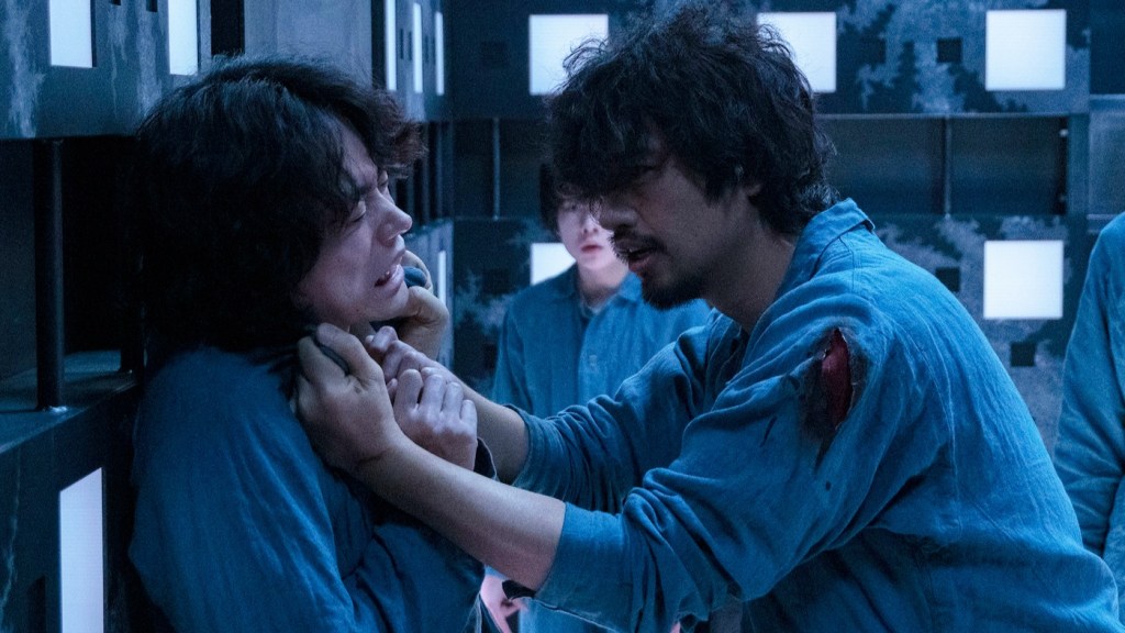 Nach einer leicht abgewandelten Version der ikonischen Eröffnungsszene nimmt also alles seinen bekannten Lauf. Wer Vincenzo Natalis Film kennt, darf fortan einer spannungsbefreiten Nacherzählung seiner Geschichte beiwohnen, während Neulinge zwar etwas Neues erleben, dabei aber ähnlich gelangweilt zurückbleiben. Wo die kanadische Vorlage schon nicht frei von Schwächen war und mit schwachen Charakteren und belanglosen Dialogen zu kämpfen hatte, setzt die japanische Neuinterpretation noch ein, zwei Schippen drauf und ersetzt die Attribute schwach und belanglos durch nervtötend und sinnbefreit. Dass „Cube“ in seiner neuen Version dann auch noch rund 19 Minuten länger ist – es gibt nun auch Rückblenden in das Leben vor dem Würfel, die die Handlung unnötig strecken – verstärkt den negativen Effekt noch einmal und töten auch noch das letzte bisschen Rest-Klaustrophobie. Abgesehen von den Blicken in die Vergangenheit eines Protagonisten, löst sich Regisseur Yasuhiko Shimizu erst in der letzten halben Stunde ein wenig von der bloßen Wiederholung des Original-Skripts und bringt noch ein paar neue Motive mit ins Spiel. Am ernüchternden Fazit ändert dies jedoch nichts.