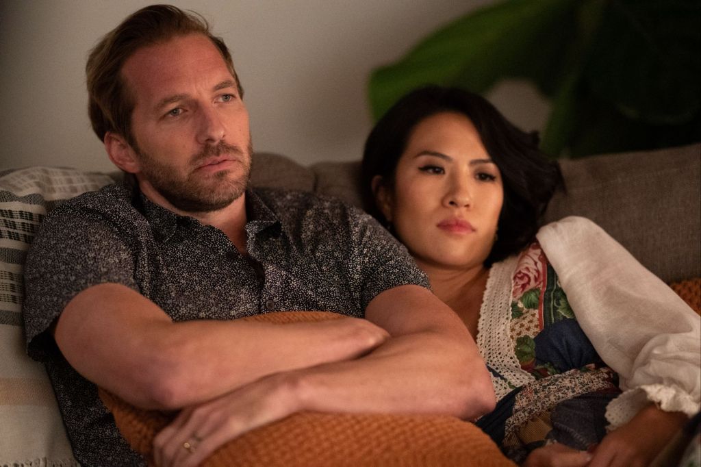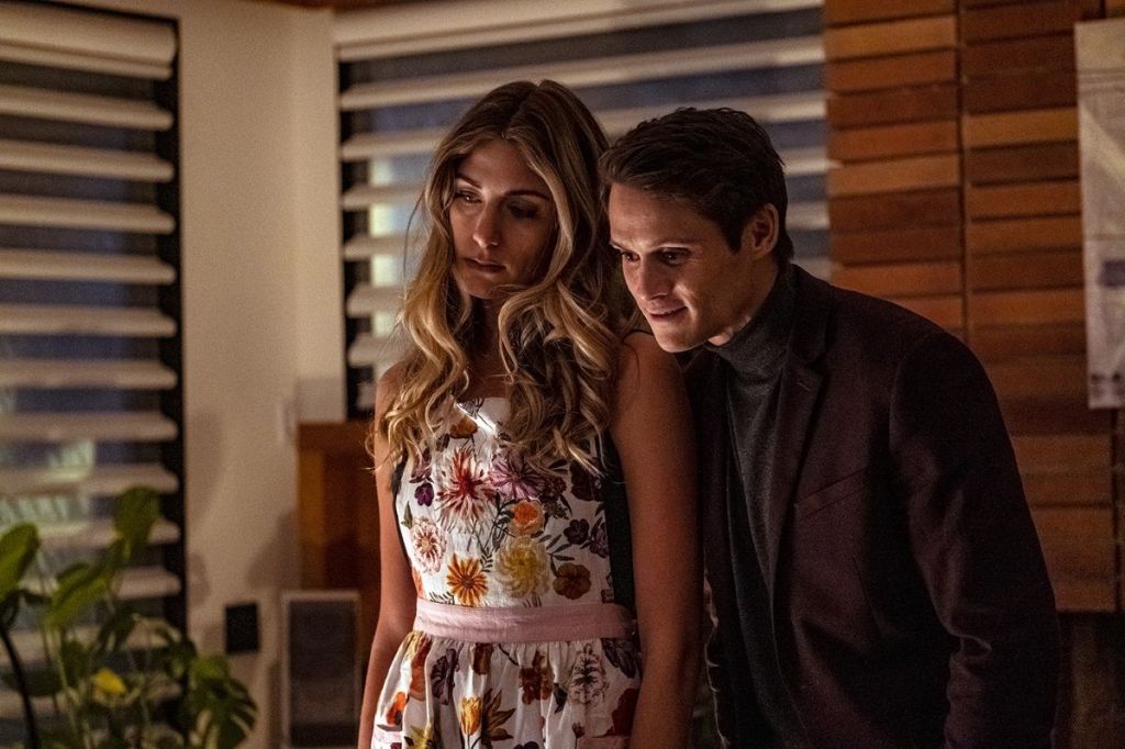 „Who Invited Them – Lass sie nicht rein“ wirft einen tiefen, düsteren Blick auf unsere eigenen Unsicherheiten und das Bedürfnis, vor anderen Menschen, die auf den ersten Blick perfekt wirken, den Schein zu wahren, um nicht als uncool wahrgenommen zu werden. Dadurch geraten die eigenwilligen, jedoch eher langweiligen Charaktere Adam und Margo in Situationen, die sie normalerweise vermeiden würden. Im Horrorgenre legt man oft großen Wert darauf, dass das Verhalten der Charaktere nachvollziehbar ist und in diesem Fall kann man durchaus verstehen, warum das Paar sich von den neuen Nachbarn, Tom und Sasha, angezogen fühlt. Beide sind äußerst attraktiv, wobei Tom durch seine charismatische Art und die stets passenden Worte besticht, während Sasha eine wilde Freinatur ist – etwas, das Adam und Margo eindeutig beneiden. Insbesondere Perry Mattfeld, die starke Ähnlichkeiten mit Hollywoodstar Jennifer Aniston aufweist, geht in ihrer Rolle als Sasha komplett auf. Doch auch die anderen drei Hauptdarsteller leisten gute Arbeit und bringen die eigenartige Dynamik überzeugend zur Geltung.